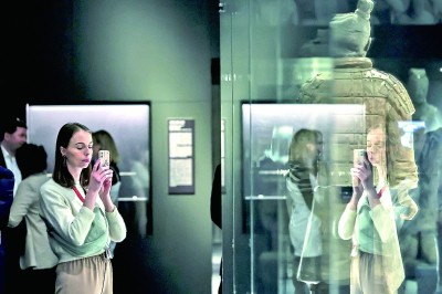 11月27日,“秦汉文明展览”在匈牙利布达佩斯美术馆开幕。百余件春秋战国至秦汉时期代表性文物,包括10件秦始皇陵兵马俑亮相。图为参观者在“秦汉文明展览”上参观。新华社发