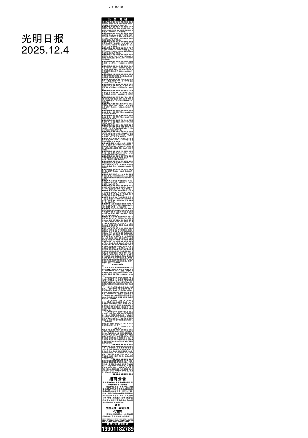 公告(10-11版中缝)