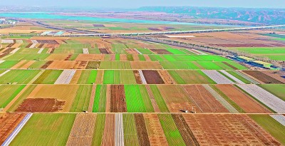 12月4日,河南孟州市南部黄河滩区万亩高标准农田,阡陌纵横、色彩斑斓,呈现出一幅冬日美景。白水平摄/光明图片