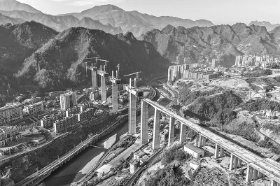 12月7日,由中铁十二局承建的西渝高铁城口任河特大桥塔柱施工任务全部完成,全桥施工进度完成近七成,为西渝高铁全线按期贯通奠定了基础。城口任河特大桥位于重庆市城口县境内,为西渝高铁康渝段重难点工程,全长1180.52米。西渝高铁是我国“八纵八横”高铁网北京至昆明的京昆通道和包头、银川至海口的包(银)海通道的重要组成部分,线路全长739公里,设计时速350公里。图为西渝高铁任河特大桥建设现场。新华社记者 唐奕摄