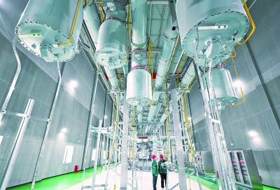 12月7日,河北雄安新区新能源输送通道关键枢纽变电站——雄安500千伏超高压变电站正式投运。据介绍,该变电站是国家“十四五”规划重点项目,是将内蒙古和河北坝上地区风电、光伏发电等清洁能源引入雄安新区的关键站点。图为12月6日,工人进行巡检。新华社记者 杨世尧摄