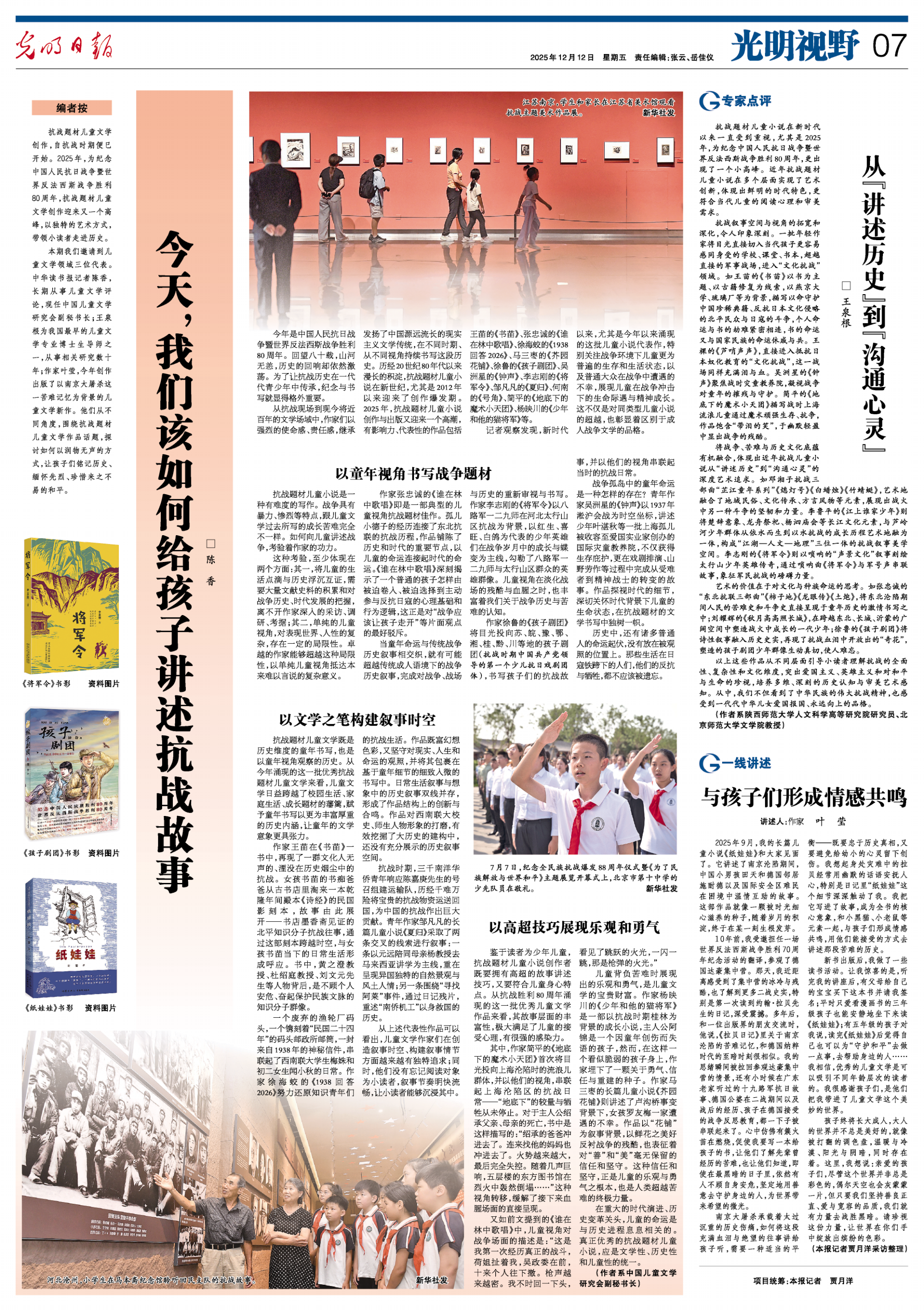 抗战题材儿童文学创作,自抗战时期便已开始。2025年,为纪念中国人民抗日战争暨世界反法西斯战争胜利80周年,抗战题材儿童文学创作迎来又一个高峰,以独特的艺术方式,带领小读者走进历史。