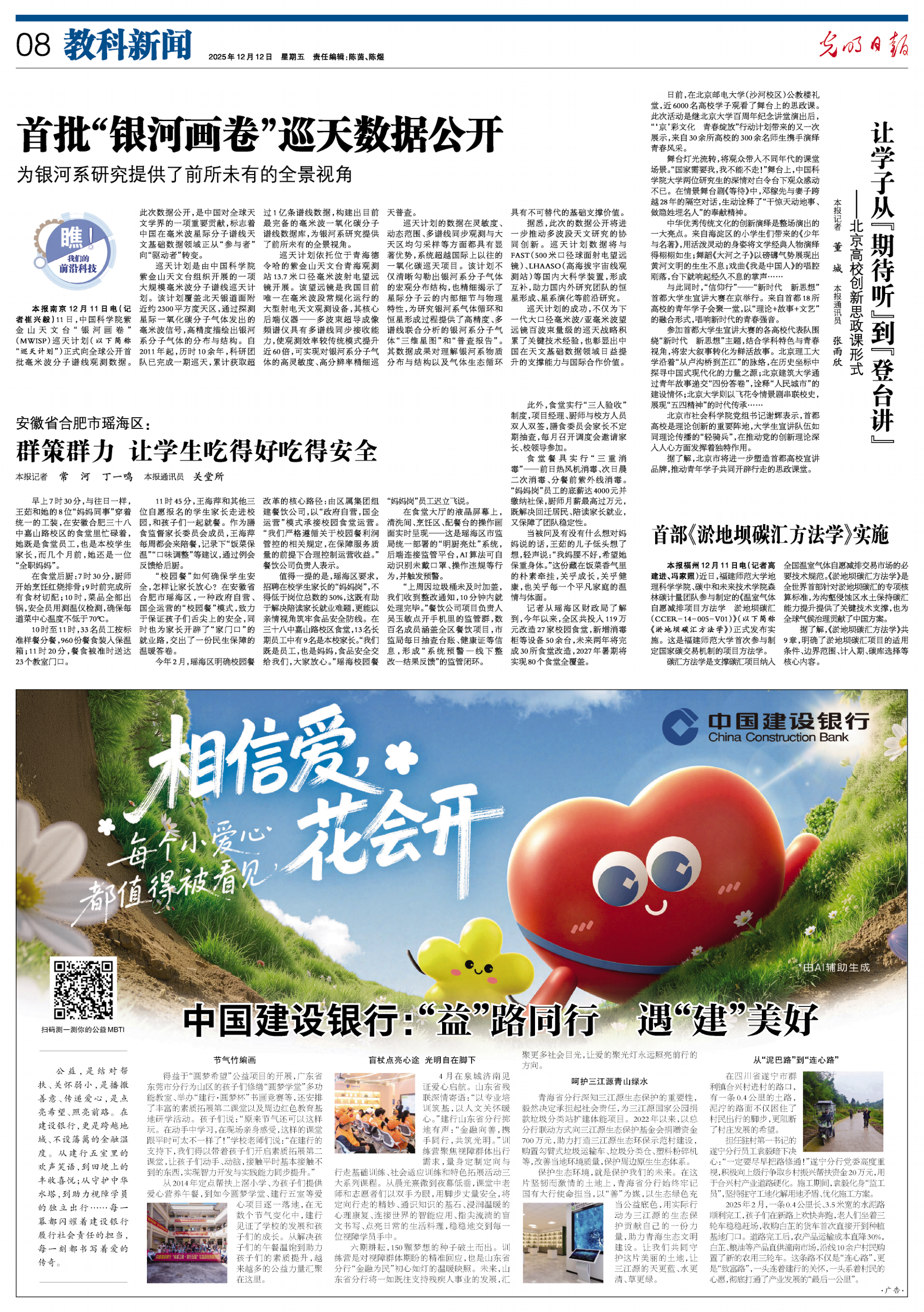 本报福州12月11日电(记者高建进、冯家照)近日,福建师范大学地理科学学院、碳中和未来技术学院森林碳计量团队参与制定的《温室气体自愿减排项目方法学 淤地坝碳汇(CCER-14-005-V01)》(以下简称《淤地坝碳汇方法学》)正式发布实施。这是福建师范大学首次参与制定国家碳交易机制的项目方法学。