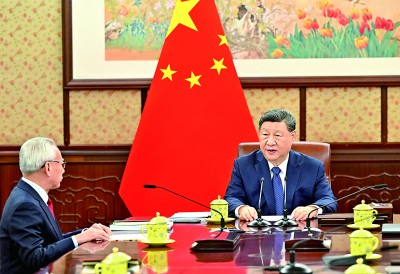 12月16日,国家主席习近平在中南海会见来京述职的澳门特别行政区行政长官岑浩辉。新华社记者 殷博古摄