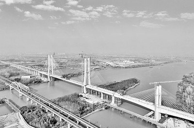 12月19日,由中国铁建大桥局承建的沪渝蓉高铁通泰扬特大桥跨京杭运河斜拉桥顺利合龙,通泰扬特大桥控制性工程取得突破性进展。图为施工现场。新华社记者 季春鹏摄