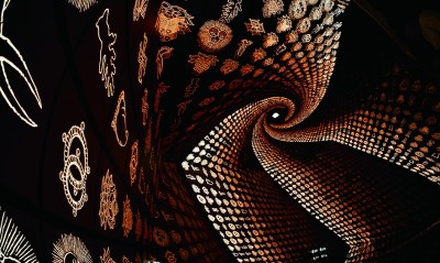 另一方面,新媒体艺术和沉浸式展览,则在积极探索藻井与观众之间的全新相遇方式。通过实时渲染与投影映射技术,原本静止的藻井纹样可以被赋予生命:云纹缓缓流动,莲瓣随呼吸舒卷,如星轨般的几何线条在穹顶上旋转、聚集、消散,营造出介于真实与虚拟之间的“光影藻井”。观众不再只是仰望者,而成为光影场域中的参与者——步伐、目光甚至心率,都可以被传感器捕捉并反馈为画面的变化,使“穹宇”对每一个个体作出独一无二的回应。