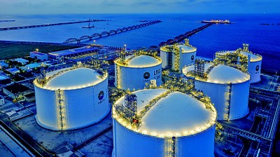 黄海之滨,天光浩荡。在江苏南通洋口港阳光岛,由中东驶来的载有26万立方米液化天然气的巨轮“扎卡”号,正缓缓靠泊。岸边,4条粗壮的红色卸料臂即将与船体对接“握手”,准备汲取跨越重洋而来的-162℃液态“蓝焰”。