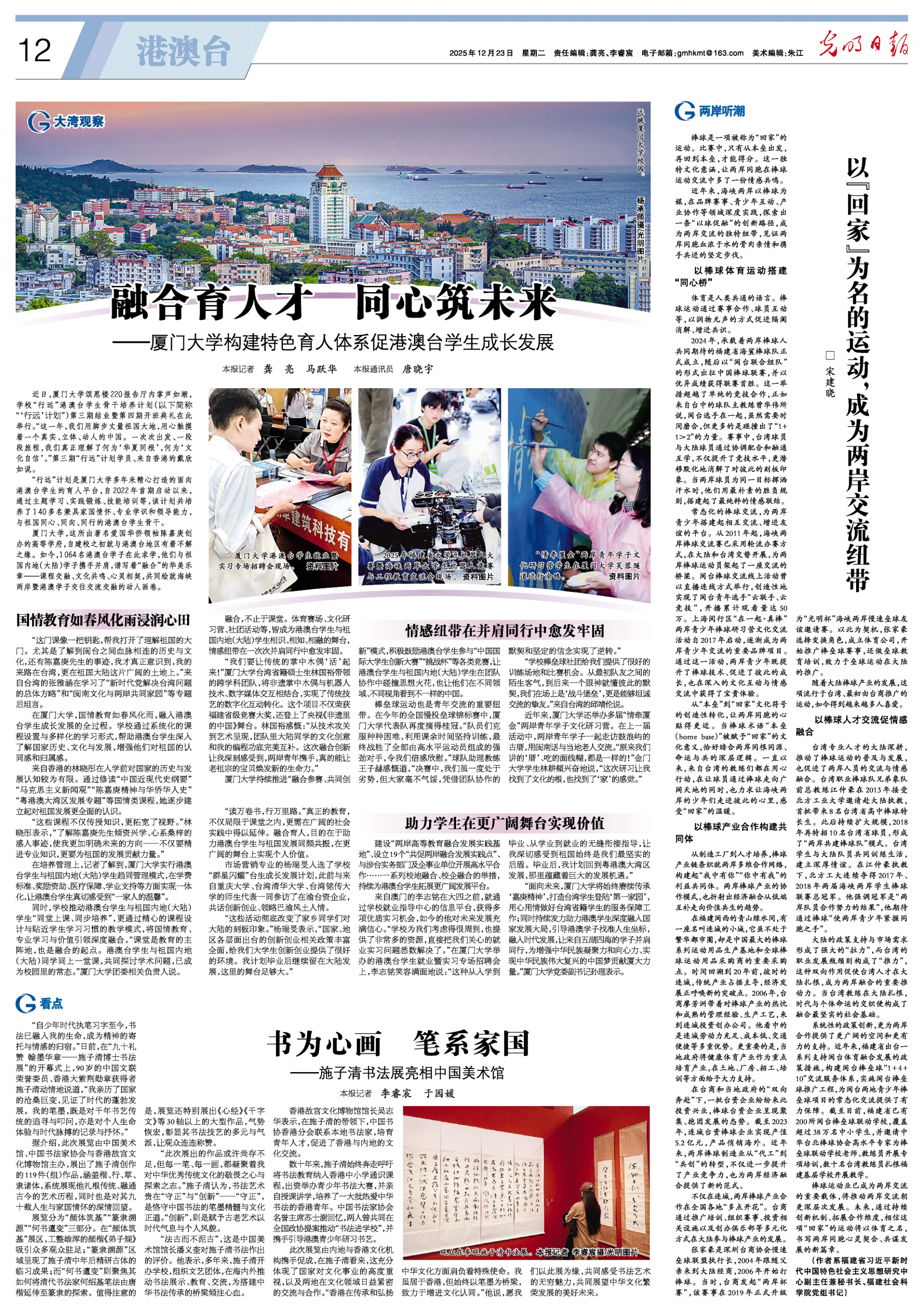 在厦门大学,国情教育如春风化雨,融入港澳台学生成长发展的全过程。学校通过系统化的课程设置与多样化的学习形式,帮助港澳台学生深入了解国家历史、文化与发展,增强他们对祖国的认同感和归属感。