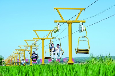 稻田,既是生产空间,也是生活空间。承接村里稻田文旅运营后,如何在不影响耕作的前提下发展文旅?杨丽娜选择“只在田埂上做文章”:观光亭、稻田小火车、低空缆车,都沿着水渠和田埂铺开,水稻照常生长,村民照常种地。