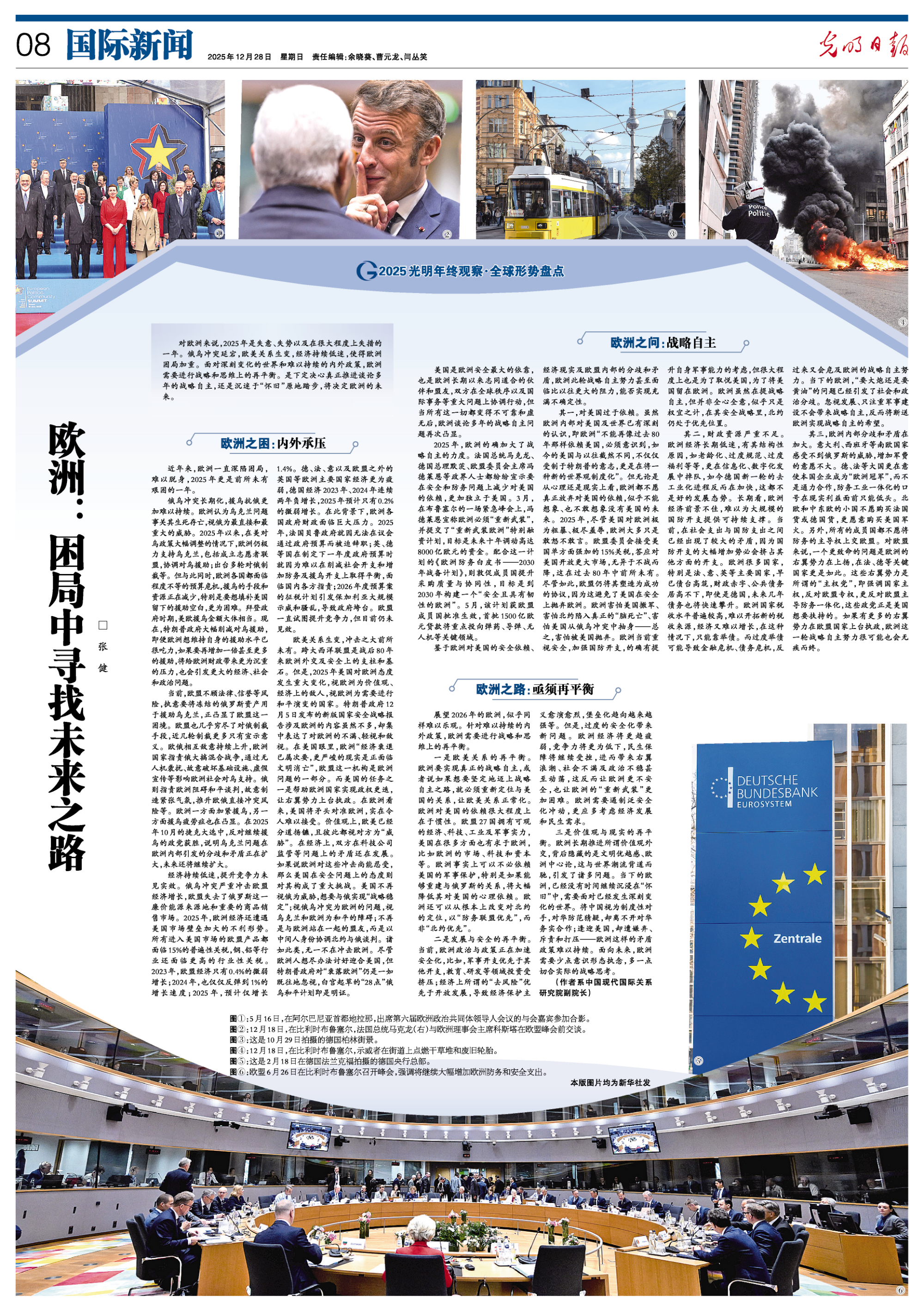 对欧洲来说,2025年是失意、失势以及在很大程度上失措的一年。俄乌冲突延宕,欧美关系生变,经济持续低迷,使得欧洲困局加重。面对深刻变化的世界和难以持续的内外政策,欧洲需要进行战略和思维上的再平衡。是下定决心真正推进谈论多年的战略自主,还是沉迷于“怀旧”原地踏步,将决定欧洲的未来。