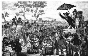 与霍加斯注重写实的漫画风格不同,18世纪末英国漫画有了新的特点,画中人物形象被怪诞化、畸形化,形成了我们现在熟知的漫画风格。此时的英国舆论空间更为广阔,加之官方的鼓励,使得漫画获得较大发展,且创作主题也趋向于民族主义的政治诉求,旨在维护英国的国家利益。这些漫画家中的杰出代表有吉尔雷、罗兰森和克鲁克香克。他们的漫画主要描绘同时代发生的重大事件:法国大革命、拿破仑的兴衰、英国激进运动等。
