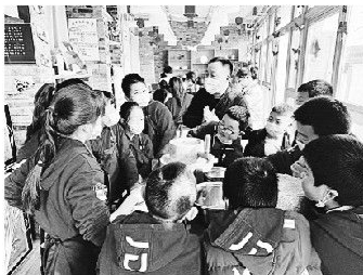 校舍改造好后的第二步就是改善食堂伙食——当时北京十一学校团队去食堂看到,学生们都挤在一个大棚里,端着铁盆站着吃饭。在收到企业捐助后,学校翻新了食堂,给孩子们在餐厅装上凳子,还推出了9元一份的自助餐。