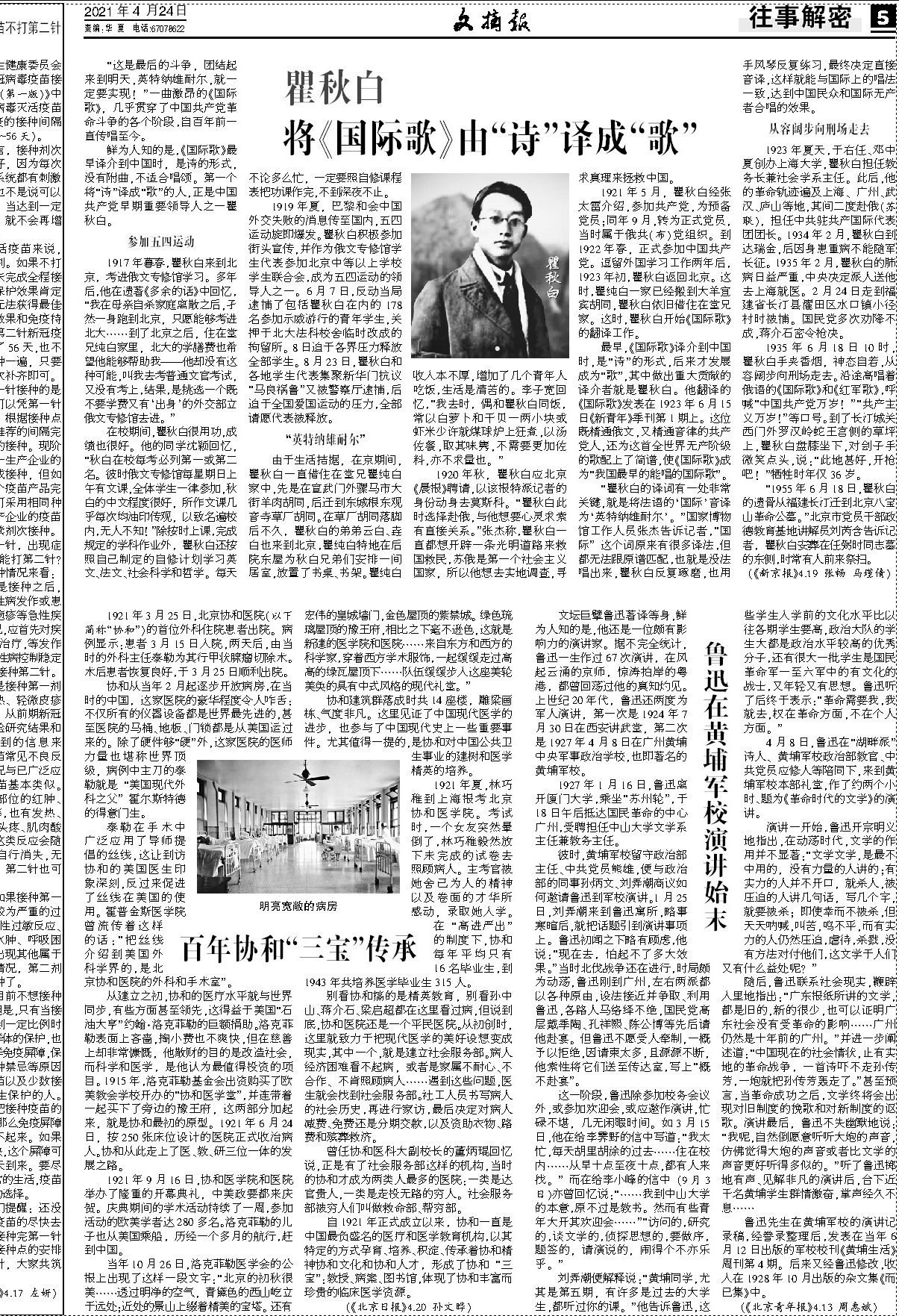 瞿秋白将《国际歌》由“诗”译成“歌”