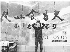 邱志杰觉得将来或许还可以去帮助一些农民,比如哪里的酒卖不出去了,去写个小酒标。又或者,哪里的苹果不好卖了,题个字,经日出日落,待斗转星移,日晒将书法留在苹果上,等到丰收的季节采摘下来,水灵灵红彤彤的带着书法字体的苹果便来到了菜市场,摆在了水果摊。