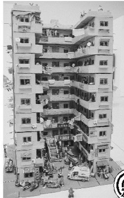 6月2日,在中央美术学院美术馆本科生毕业展现场,由造型学院雕塑系学生张明创作的《“摩天”》引来许多围观者。这件1.1米高的陶瓷雕塑作品,主体是一栋9层高的老式居民楼,作者细致地塑造了居民楼中充满人情味儿的一幕幕场景,让观众身临其境。