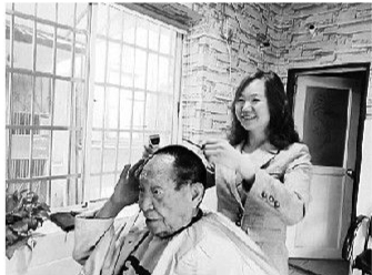以前,袁隆平总是一个人跑来理发,但近两年,他的身体状况明显变差,只能由身边人推着轮椅送他来理发。
