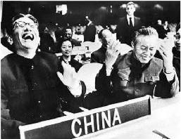 1971年11月15日上午10时15分,中国代表团成员气宇轩昂地走进会议大厅,团长乔冠华、副团长黄华等人依次在标有CHINA的席位上入座,会场上所有人都起立报以热烈的掌声。乔冠华落座了礼宾司长亲自为他拉开的中国名牌后的那张椅子。此时,有记者问:“乔先生,你现在坐在这张椅子里有何感想?”乔冠华听后给出了一个仰头大笑。记者不解,他进而解释:“我现在的心情不是已经回答了你的问题了吗?”