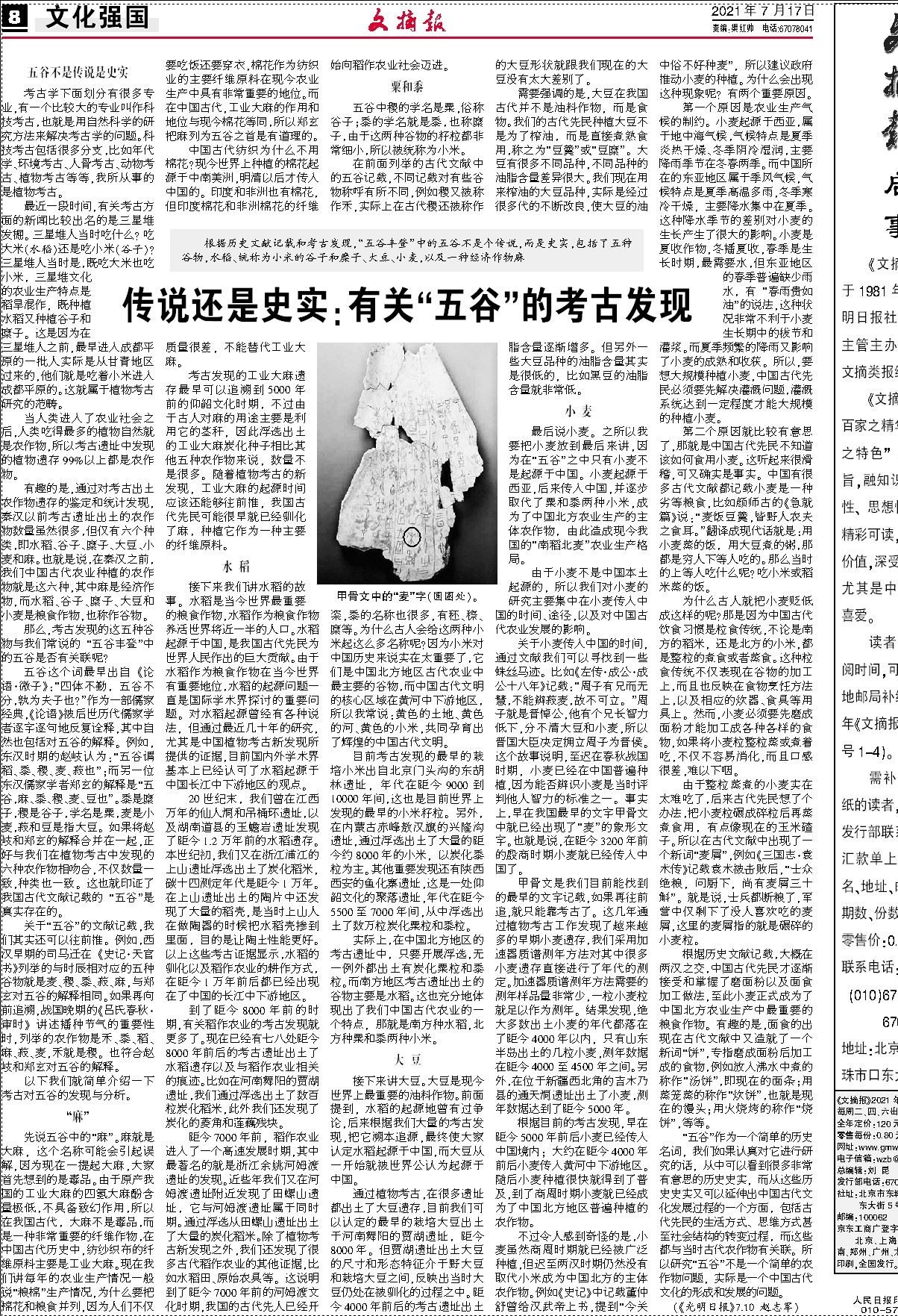 传说还是史实:有关“五谷”的考古发现