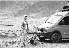一路上,平凡的人们带给王方树最多感动。走青藏线去格尔木的时候,一路平均海拔都在四千以上,人在平地走路都会气喘。偶然间,他看了一眼反光镜,竟然看到一个大哥在路上推着一个小工具车,跑步跑了过来。他停下来叫住大哥一问,才知道他从青海的东大门出发,是要全程跑去拉萨的。大哥告诉他等会儿还要翻一座海拔5010米的风火山,还劝他不要待得太久,“这边海拔高,容易高反”。王方树得知他不喝咖啡,便拿出几盒牛奶送给他。