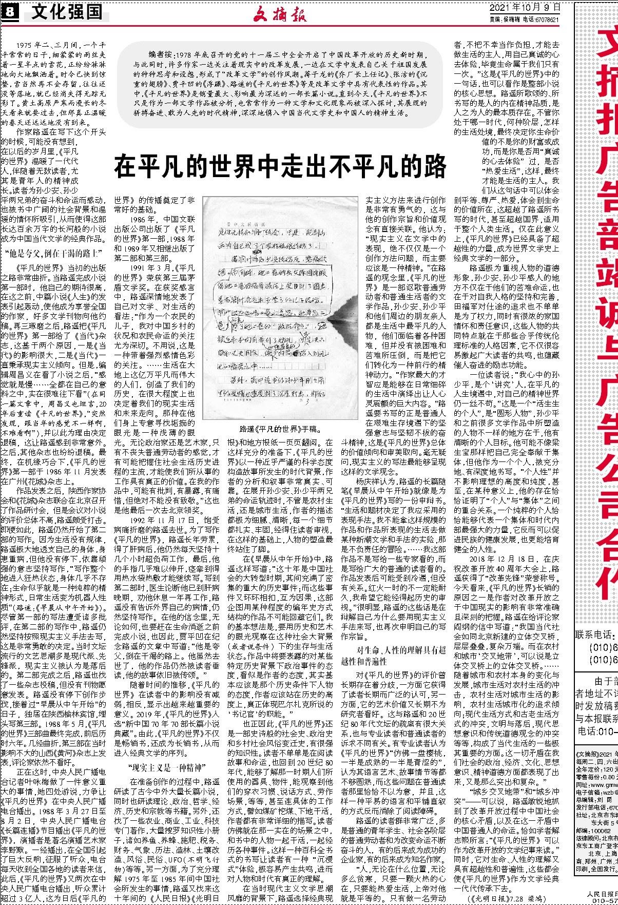编者按:1978年底召开的党的十一届三中全会开启了中国改革开放的历史新时期,与此同时,许多作家一边关注着现实中的改革发展,一边在文学中发表自己关于祖国发展的种种思考和设想,形成了“改革文学”的创作风潮。蒋子龙的《乔厂长上任记》、张洁的《沉重的翅膀》、贾平凹的《浮躁》、路遥的《平凡的世界》等是改革文学中具有代表性的作品。其中,《平凡的世界》是销量最大、影响最为深远的一部长篇小说。直到今天,《平凡的世界》不只是作为一部文学作品被分析,也常常作为一种文学和文化现象而被深入探讨,其展现的拼搏奋进、敢为人先的时代精神,深深地镌入中国当代文学史和中国人的精神生活。