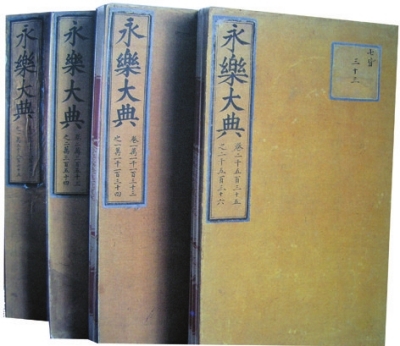 《永乐大典》是明成祖朱棣命太子少师姚广孝和翰林学士解缙主持,历时四年,于永乐六年(1408)修成的大型类书。参与编校、誊写圈点者三千余人,辑入古今图书七八千种,包括经、史、子、集、释藏、道经、戏剧、平话、工技、农艺等,搜集极为宏富。至永乐六年(1408)冬成书,全书编成目录60卷,正文22877卷,装成11095册,总字数约3.7亿字,皇帝赐名为《永乐大典》。