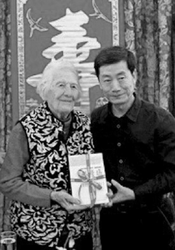 这位百岁老人是加拿大籍国际友人伊莎白·柯鲁克(Isabel Crook),她是新中国英语教学的拓荒人,荣获“改革开放40周年最具影响力的外国专家”称号,也是李朋义的恩师。