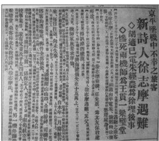 11月20日的《北平晨报》《民国日报》等报纸的报道,与《大公报》完全相同。此时人们尚不知遇难的乘客即徐志摩。当日下午,《北平晨报》发了号外,首先确认了徐志摩遇难的事实。
