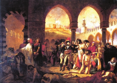 1798年,为了捍卫法国的贸易利益,掌握制海权,法国的督政官们决定对英国的本岛发动一次进攻,他们任命二十九岁的拿破仑·波拿巴(1769—1821)指挥为此集结在英吉利海峡一带的法军出征。这次军事行动一开始就取得了巨大的成功:6月11日占领了耶路撒冷圣约翰医院骑士团的大堡垒马耳他;7月1日强攻拿下亚历山大城,整个尼罗河三角洲被迅速踏平。1799年2月,拿破仑进入叙利亚,并向西北方向推进。但是,一场瘟疫在巴勒斯坦雅法(Jaffa,即今日特拉维夫)的城堡里爆发,几天里,差不多3000名战俘死亡,法国的兵团也受到传染。