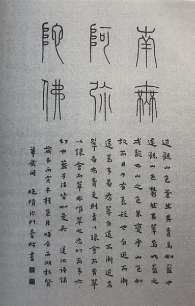 一次,叶康乐先生与我谈到,他在颂读《大方广佛华严经·贤首品》时,读到“雅思渊方文中玉,歌舞谈说众所欣。一切世间众技术,譬如幻师无不现”偈语,忽而感悟此偈正是弘一法师一生的完整诠释。因此,弘一法师不同的信笺形式与不同时期书法的书写,还能感受时代文化变迁的印记。从法师早年书意魏碑《张猛龙》的古朴浑厚、气势雄浑,到晚年的书信笔法简静的线条与平静的笔势中,从墨色流痕间流淌着无我的意态,仿佛清溪流泉水的美感。特别是弘一法师晚年的信札书法,笔笔到位,平和简静,清峻高格,亦呈清静之境。大书者皆通天地性情。常听到一些对手稿书法有悟性的人,观赏弘一法师书信书法说:“一看到弘一法师的字,我的心就宁静下来,感到无上的清凉。”由此深刻地感受到法师所语:“我的字就是法”。这就是弘一法师书法法相的布施。特别拜读法师临终绝笔“悲欣交集”四字偈语,令人感通法师从沧桑世尘走向庄严清净的“皓月临空,清净无尘”的精神境界!