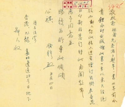 五月四日来信已经收到。大著《先秦诸子系年》由先生在港自印新版发行,我馆可以同意。覆致