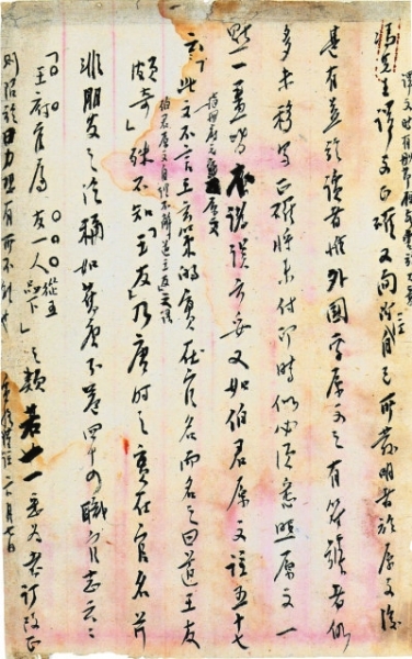 除了冯先生所译《蒙古与教廷》手稿,杜先生还把随稿带来的几封书信、残稿等送给我。晚上,我整理那些书信、残稿时,有一页发旧并有水渍的文稿引起了我的注意,字迹很像陈寅恪先生的手迹。我小心地拿起这张陈旧泛黄的稿纸,轻轻地把它放在写字台上,并小心翼翼地用镇纸压住,然后一字一字地往下读: