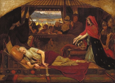 英国画家福特·马多克斯·布朗(Ford Madox Brown,1821—1893)虽然不是拉斐尔前派的成员,但却是拉斐尔前派画家但丁·加布里埃尔·罗塞蒂的学生,他的作品在感情、技巧和兴趣方面也都与拉斐尔前派画家相似。每个拉斐尔前派画家都会画几幅莎士比亚,如约翰·埃弗雷特·米莱斯,威廉·霍尔曼·亨特和罗塞蒂等。如他们一样,布朗也转向莎士比亚,并将之作为他终生的灵感泉源。