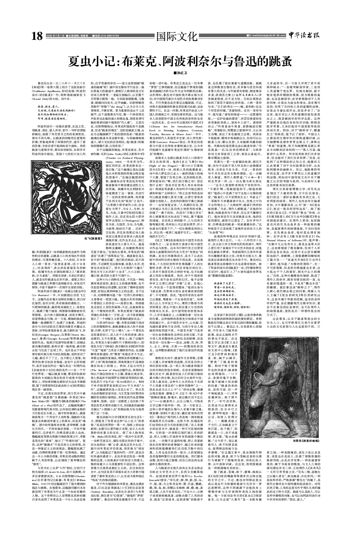 宾雍的种种观点在当时亦传到中国,被周作人等人征引。一九一八年四月十九日,在北京大学文科研究所的讲演中,周作人便引用了宾雍关于中日艺术的言论,对他的见解极为赞赏。考虑到周氏兄弟早年读书兴趣颇多重合之处,对美术兴致又大,鲁迅读过宾雍的著述也未尝不可。鲁迅对以跳蚤等昆虫取譬的方式也是情有独钟。除了阿波利奈尔的《跳蚤》一诗,《华德保粹优劣论》中,他还引入了“大家知道的世界名曲”歌德的《跳蚤歌》: