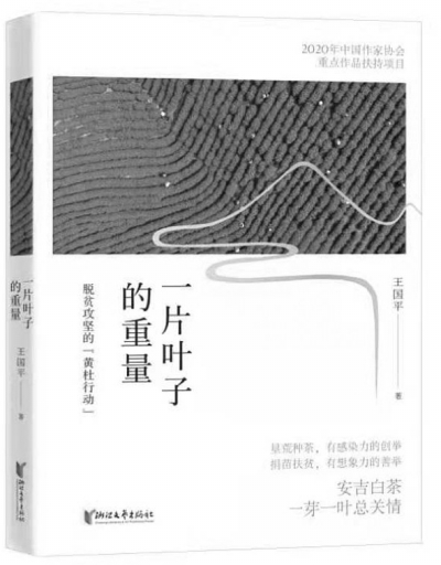 《一片叶子的重量:脱贫攻坚的“黄杜行动”》是第五届徐迟报告文学奖得主王国平创作的长篇报告文学作品。全书记录了浙西北群山旮旯里穷得叮当响的湖州安吉县黄杜村,以习近平总书记“绿水青山就是金山银山”理念为指引,在党的领导和支持下,干部党员带头,通过种植白茶走出了一条绿色发展之路。“一片叶子富了一方百姓”,书中记述了黄杜村党员致富之后,牢记共产党人的初心和使命,主动向川、贵、湘几省的贫困地区群众帮扶脱贫的故事。