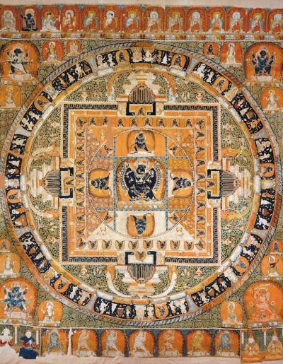 这就埋下了一个坑。不出意料,第一次看到缂丝的时候,有点蒙,巨幅《缂丝无量寿尊佛像》就在触手可及的地方,保存也相当完美。好比是一个人自幼在山里修行,没见过姑娘,下山去,遇见的第一个就是绝世大美女,倾国倾城,你说吓不吓人? 可自己还一点都不稀罕,也不觉得走运,随随便便就放了手。关键是一开始的起点太高,今后遇到的其他姑娘都不觉得怎样了,等想起来再找第一个,也不知道她去哪儿了,这才叫痛苦。