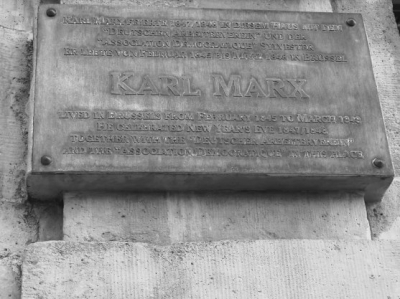 生。今天,我们在咖啡馆的外墙上可以看到一块纪念铭牌,上面写道:“马克思自1845年2月至1848年3月住在布鲁塞尔;他曾和德意志工人协会和当地民主协会人员一起在这里欢度了1847和1848年的新年之夜。”马克思在布鲁塞尔的三年中,曾换过七八个工作和居住地点,但除了这家天鹅咖啡馆还保留着当年的基本轮廓和用途外,其他均已面目全非。