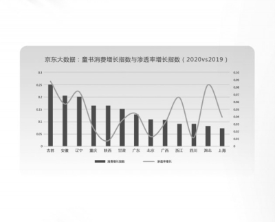 从童书消费增长情况来看,内陆省份的增速要高于沿海和高线城市,从渗透率增长看,湖北、吉林、辽宁、浙江等东部教育大省的增速明显高于其他省市,而贵州、河南、宁夏等中西部省区的增长较为缓慢。