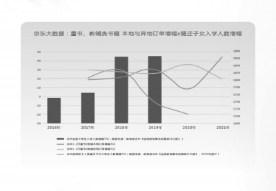 自2016年以来,全国适龄小学生入学人数持续上升,但进城务工人员随迁子女入学的增幅一直在下降,在2019年出现负增长,而京东近年相关童书的消费数据也验证了这一趋势。