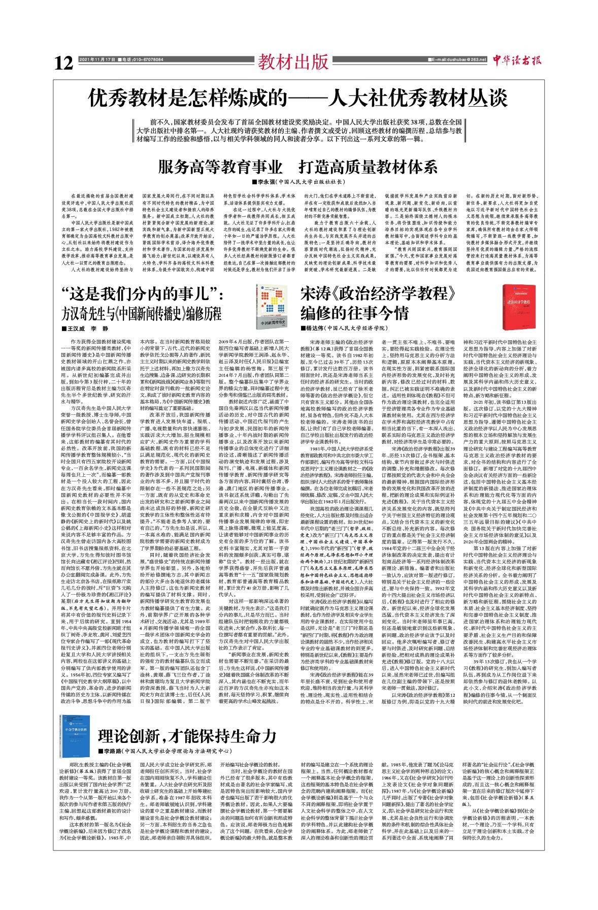 优秀教材是怎样炼成的——人大社优秀教材丛谈