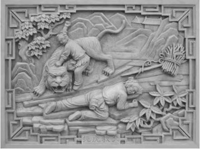 《扼虎救父》唐语砖雕