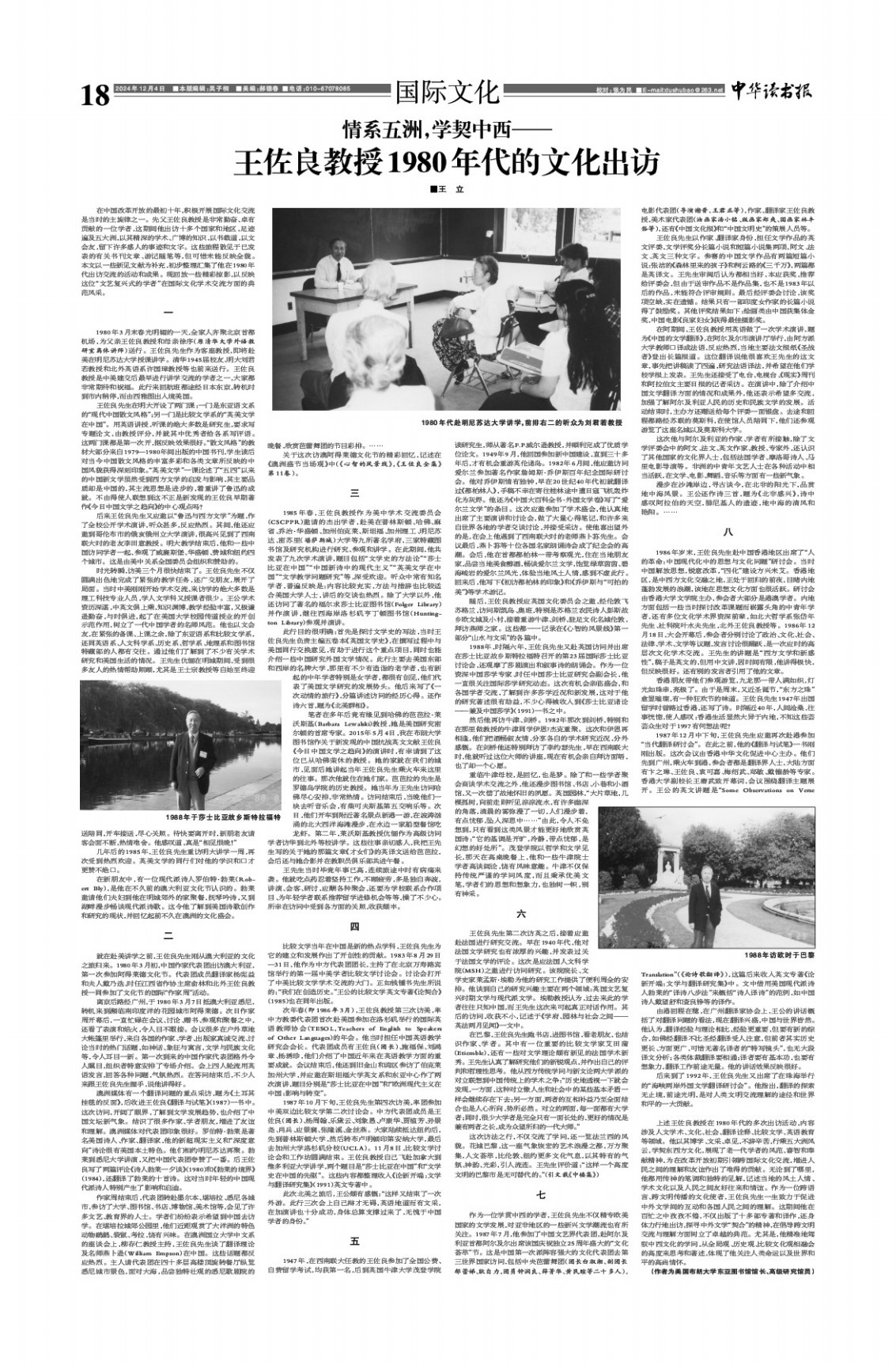 王佐良教授1980年代的文化出访