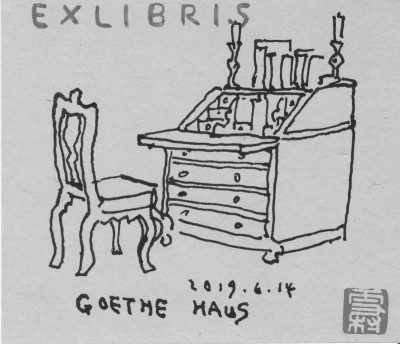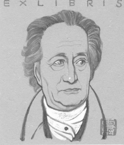 手绘藏书票之歌德像·歌德书桌