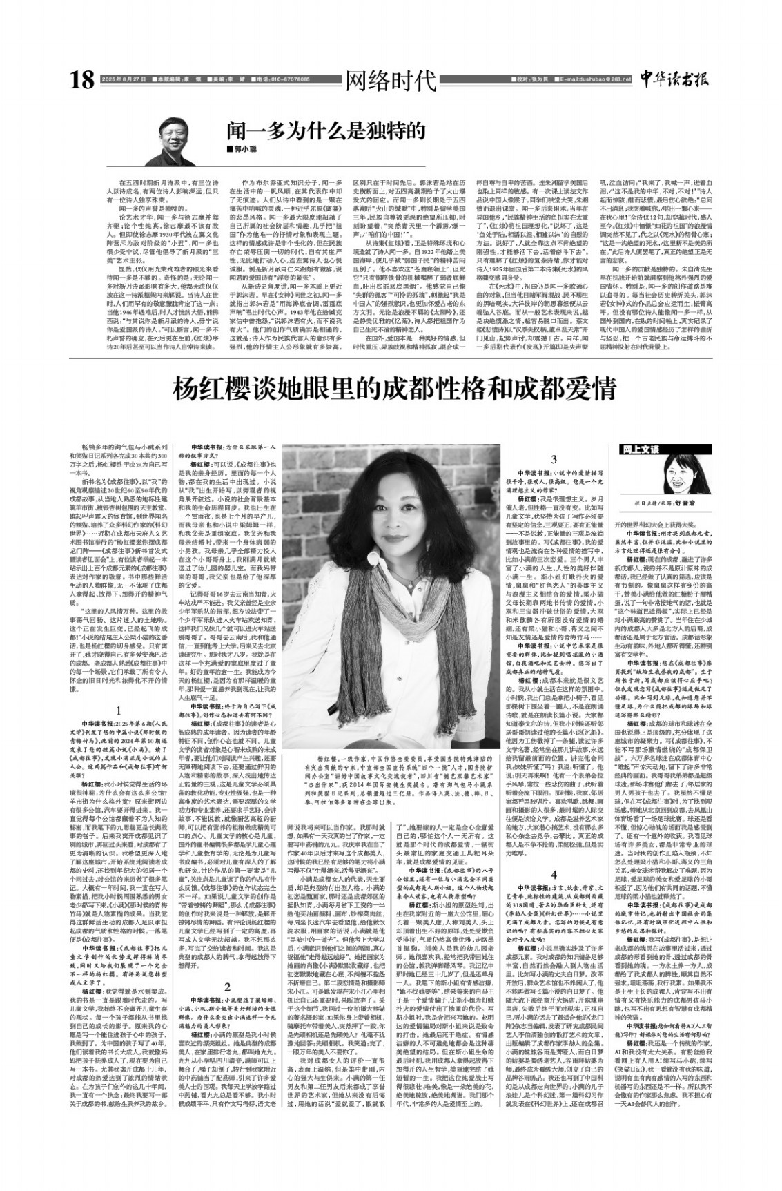 杨红樱谈她眼里的成都性格和成都爱情
